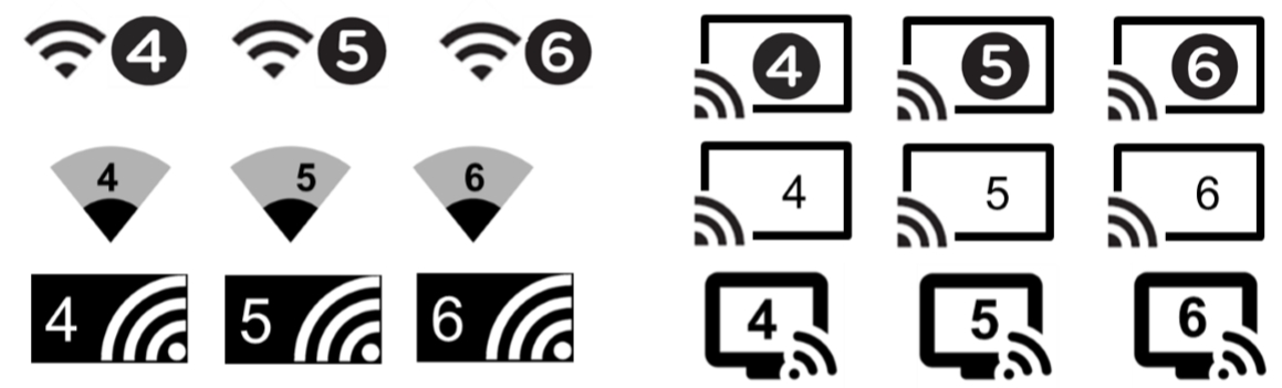 와이파이얼라이언스의 명칭 규정이 바뀌면서 영향을 받게 된 건 와이파이6 외에도 기존 IEEE802.11ac의 경우 와이파이5(Wi-Fi 5), IEEE802.11n은 와이파이4(Wi-Fi 4) 2개다. 제조사는 새로운 명명 규칙 변경에 따라 사용자 인터페이스에 시각적으로 통합할 수 있고 어떤 세대 무선랜 규격을 사용 중인지 여부를 한눈에 이해할 수 있게 해줄 수 있다. 와이파이 4, 5, 6이 어떤 아이콘으로 UI에 표시되는지만 보면 되기 때문.