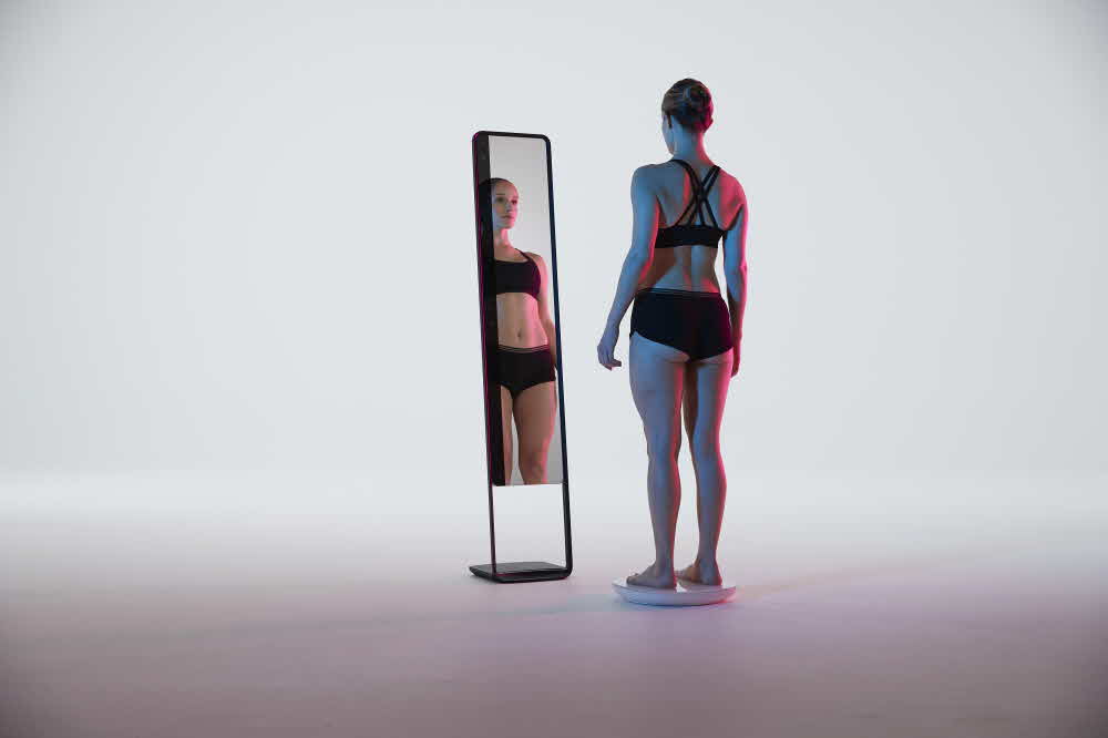 이 제품은 스마트 거울과 체중계 세트로 이뤄진 제품으로 머리에서 발끝까지 360도 스캔을 할 수 있다. 사람이 체중계에 올라가면 본체가 회전하면서 인텔 리얼센스(RealSense) 센서를 통해 적외선으로 측정을 해주는 것. 이를 통해 400만 개에 이르는 데이터를 수집한다. 정확도는 5mm 오차 수준이라고 한다. 측정 데이터는 와이파이나 블루투스를 통해 전용앱엘 동기화된다. 3D 모델링 자체는 5분 남짓 시간이면 완성할 수 있다고 한다.