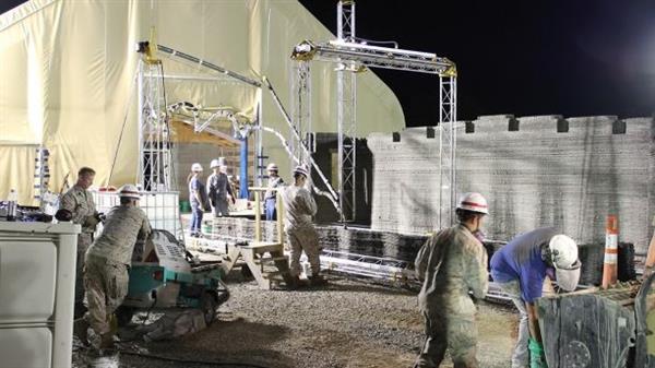 이 기술은 미 해병대와 미 육군 공병연구개발센터(US Army Engineer Research and Development Center)가 공동 개발한 콘크리트 3D프린터를 이용한 것이다. 14평 규모 면적 막사를 40시간 안에 만들었다고 한다. 이 실험에선 3D프린터를 10년 전 PC로 제어하면서 건설하는 데 성공했다. 첫 시도인 탓에 전문가 검사나 콘크리트 보충 등을 실시하면서 건설한 탓에 40시간이 걸렸지만 콘크리트 보충 기계를 이용하면 24시간 안에 건설을 끝낼 속도라고 한다.