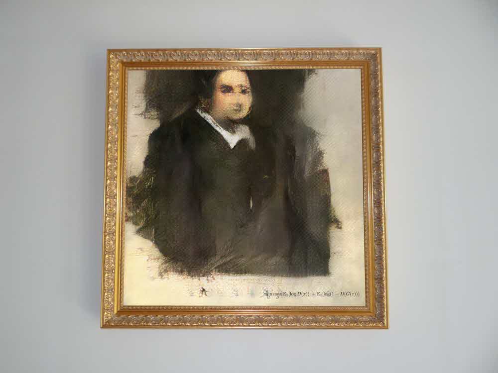 에드먼드 드 벨라미는 인공지능이 그린 11개 초상화 작품 중 하나다. 작품 자체에는 이 같은 인공지능의 냄새(?)가 남아 있다. 사인을 보면 알고리즘에 이용한 수식으로 표현한 것만 해도 그렇다.