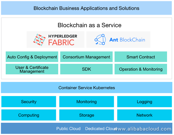 알리바바 클라우드는 리눅스재단이 주관하는 블록체인 프로젝트인 하이퍼레저(Hyperledger) 뿐 아니라 알리바바 그룹 산하 금융계열사, 앤트파이낸셜이 개발한 앤트 블록체인도 지원하고 있다. 앤트블록체인은 지난해 10월 정식 운영을 시작해 스마트 계약과 컨소시엄 블록체인 관리, 자동 배포 소프트웨어 개발 키트 등을 지원한다. 알리바바는 지난 9월 초에도 제3자가 개입할 수 있는 블록체인 특허를 취득하는 등 분산원장 기술 연구 개발에 상당 투자를 진행 중이다. 관련 내용은 이곳에서 확인할 수 있다.