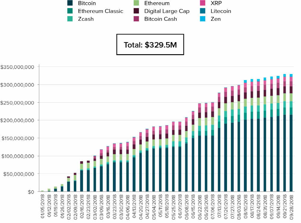이에 따르면 올해는 암호화폐 시장이 전반적으로 약세였지만 그레이스케일의 경우 호조를 보인 셈이다. 그레이스케일은 암호화폐 상품 9개를 제공 중인데 비트코인 가격에 연동하는 GBTC의 경우 3분기 투자 점유율은 73%로 최대치를 기록했다. 3분기 주당 평균 투자액은 620만 달러였고 GBTC는 450만 달러로 투자 금액 중 70%는 기관투자자였다고 한다.
