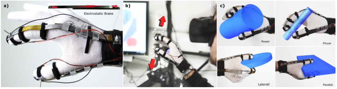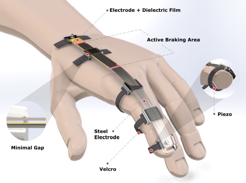 그 비결은 두께 2mm짜리 금속판 2장에 있다고 한다. 손등에서 손가락까지 연결되어 있는 이 금속판은 평소에는 부드럽고 자유롭게 움직일 수 있어 손가락을 구부리거나 늘릴 때에는 부하가 걸리지 않는다. 하지만 가상현실 공간에서 물건을 잡았다고 인식하면 전류를 통해 금속판이 고정된다. 손바닥 쪽에 촉각을 전해주는 게 아니라 손등 쪽 움직임을 제어해 물체 크기를 알 수 있게 해주는 것이다.