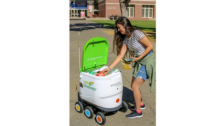펩시콜라로 잘 알려진 펩시가 발표한 스낵 로봇 펩시코(PepsiCo)는 스마트폰 앱을 통해 주문한 스낵과 음료를 자율 주행 로봇이 배달해주는 역할을 한다. 미국 대형 음료 기업에선 처음으로 이 배송 로봇이 실험적으로 캘리포니아 퍼시픽대학에서 테스트를 진행한다고 한다.