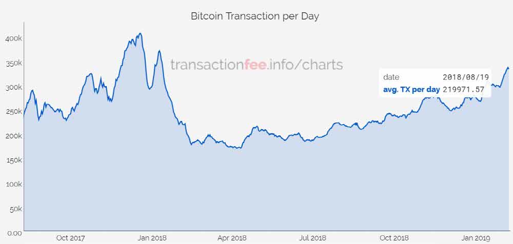 트랜잭션피닷인포(transactionfee.info)가 내놓은 데이터에 따르면 올해 2월 1일 기준 비트코인 트랜잭션이 2018년 1월 수준으로 회복되고 있다고 한다. 이를 두고 비트코인 보안 시스템 기업 카사(Casa) 최고 기술 책임자인 제임슨 롭(Jameson Lopp)은 개인 블로그를 통해 비트코인 시스템이 개선되면서 성장하고 있다는 증거라고 설명하고 있다.