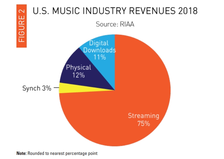 미국음악협회 RIAA가 연례 보고서를 통해 음원 수익이 지난 2017년보다 11.9%나 늘어난 98억 달러를 기록했다고 발표했다. 또 이제 주요 수익원은 음악 스트리밍 서비스이며 전체 가운데 75%를 차지하고 있으며 금액으로는 74억 달러에 달한다.