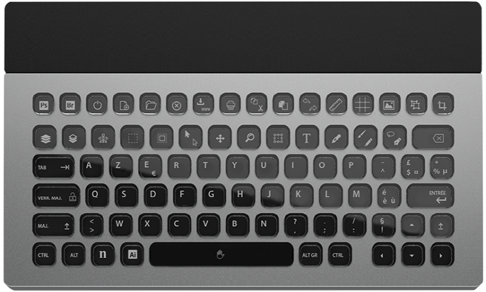 네메이오(Nemeio) 키보드는 모든 키를 사용자 정의할 수 있게 e잉크를 지원하는 키보드다. 프랑스 기업 네메이오가 선보인 이 제품은 자유로운 키 구성을 할 수 있도록 제품을 설계했다. 블루투스를 이용한 무선 키보드로 키 부분은 e잉크로 표시하기 때문에 모든 키는 키 맵핑을 자유롭게 바꿀 수 있는 것.