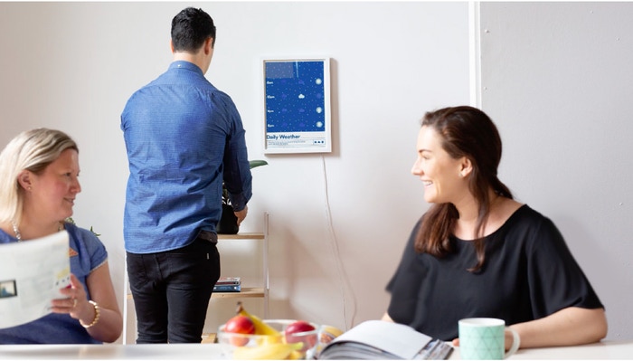 이 제품은 하루 날씨를 오전 8시, 정오, 16시, 20시로 구분해 시간별 날씨 아이콘을 자동으로 표시해준다. 포스터지만 가전이라는 독특한 컨셉트를 내걸었다. 전체적으론 실크 스크린 인쇄지만 아이콘 부분만 변색되는 스마트 잉크를 이용했다. 아이콘은 하루 종일 정보가 업데이트되며 변경에는 5∼15분 가량 다소 시간이 걸린다.