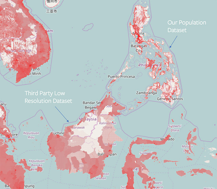 페이스북이 콜롬비아대학 국제지구과학정보네트워크센터 CIESIN과 공동으로 개발한 지도는 인공지능을 이용한다. 인구 데이터와 위성 이미지에 머신러닝을 적용해 복잡한 구조로 맵핑, 인구 분포를 자세하게 계산할 수 있어 다양한 활용이 가능하다고 한다.