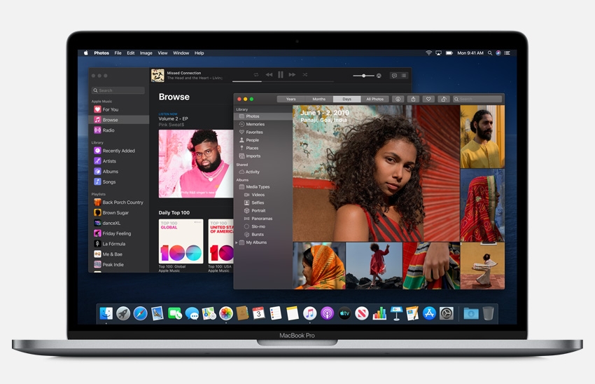 다음은 맥OS. 새로운 맥OS의 코드네임은 카탈리나(Catalina)다. 카탈리나에선 오랫동안 애플을 지탱해온 아이튠즈가 결국 해체되며 앱 3개로 기능이 분할된다. 또 새로 추가한 사이드카(Sidecar)라는 기능을 통해 아이패드를 보조 디스플레이로 이용할 수 있게 된다.