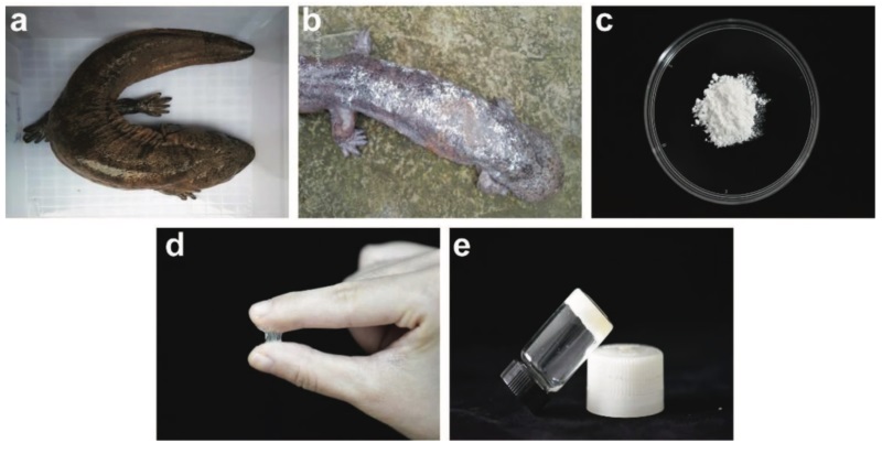 연구팀은 새로운 의료용 접착제를 SSAD(skin secretion of Andrias davidianus) 그러니까 중국장수도롱뇽 피부 분비물이라고 명명했다. 이 생체 접착제를 만들려면 도롱뇽 피부를 자극해 분비물을 직접 수집한 다음 동결 건조해 분말 형태를 만든다. 그런 다음 생리 식염수를 추가해 젤 물질로 만드는 것. 연구팀에 따르면 도롱뇽 점액에 이물질은 아무 것도 추가하지 않는다고 한다. 채취한 점액을 거의 그대로 사용하는 것이다.