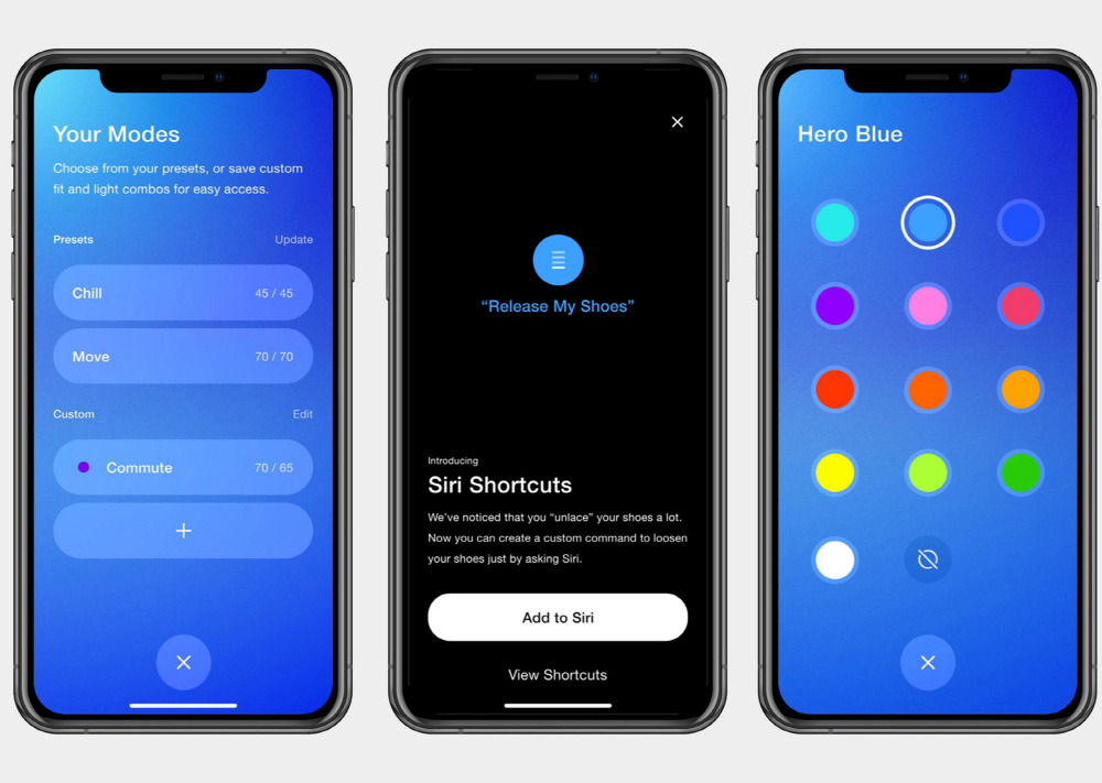 물론 시리 바로가기를 지원한다고 해서 특별한 기능이 더 부여되는 건 아니다. 신발 끈을 조이거나 푸는 정도 밖에 할 수 없다. 하지만 끈 조임 상태를 앱에 사전 등록하면 앉아있을 때 헐렁한 착용감을, 걷거나 달릴 때에는 조금 타이트하게 전환을 시킬 수 있다. 또 전용 앱을 통해 LED 발광 색상을 선택할 수도 있다.