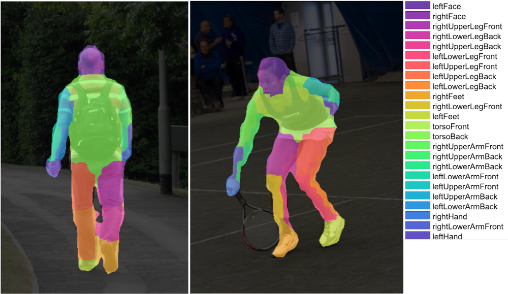 바디픽스(BodyPix)는 구글이 공개한 기계학습 모델인 텐서플로우(TensorFlow.js)를 활용한 새로운 분할 기법이다. 사람과 배경을 구별할 뿐 아니라 인체를 24개 부분으로 나눠 인식하는 것도 가능하다.