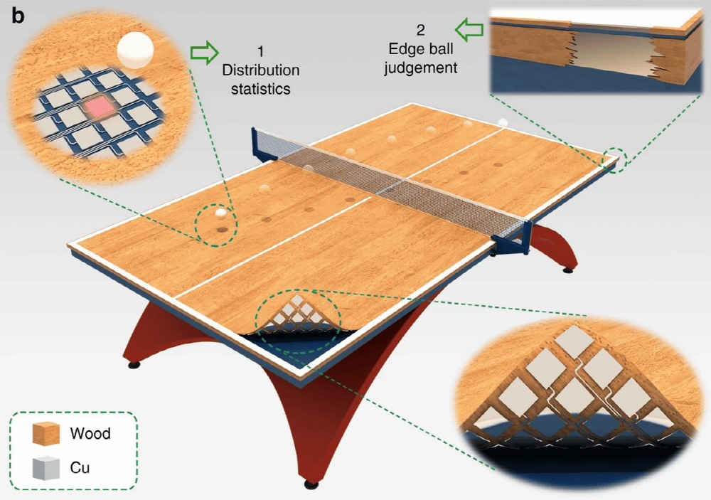 연구팀은 화학 처리를 해 마찰 전기 특성을 높인 목재 표면 아래에 마찰 전기 센서를 더해 탁구공이 탁구대게 닿는 순간 마찰을 이용해 발전하고 받침대에 접촉한 공 데이터를 수집, 송신하는 스마트 탁구대 개발에 성공했다. 이 스마트 탁구대는 탁구공을 접촉할 때 발생하는 전력을 이용해 공 속도와 접촉한 위치 데이터 등을 수집, 전송한다.