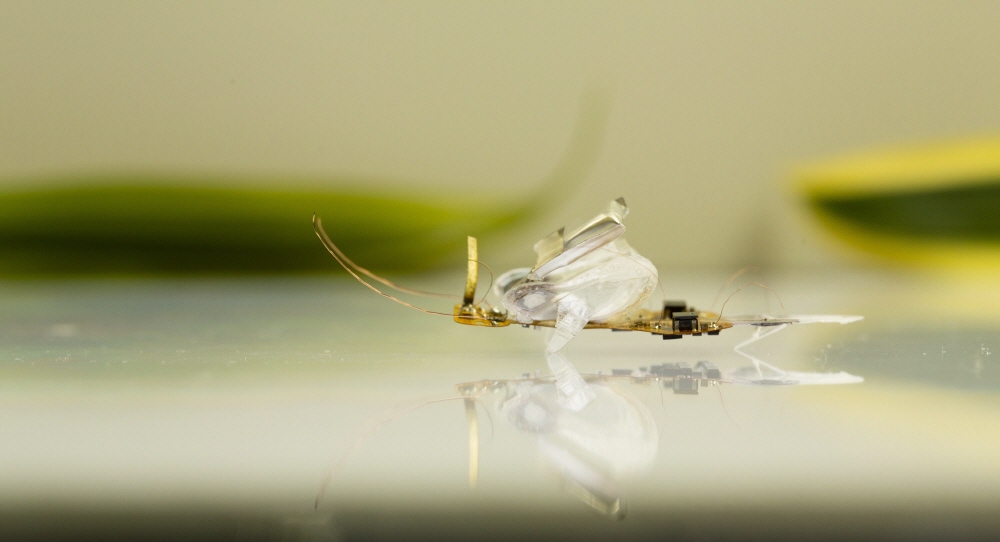 로잔연방공과대학 IAL(Integrated Actuators Laboratory) 연구팀이 부드러운 소재와 인공근육을 탑재한 비행 로봇(DEAnsect)을 개발했다. 이 로봇은 파리채로 마음껏 내리쳐도 부서지지 않을 만큼 유연하다.