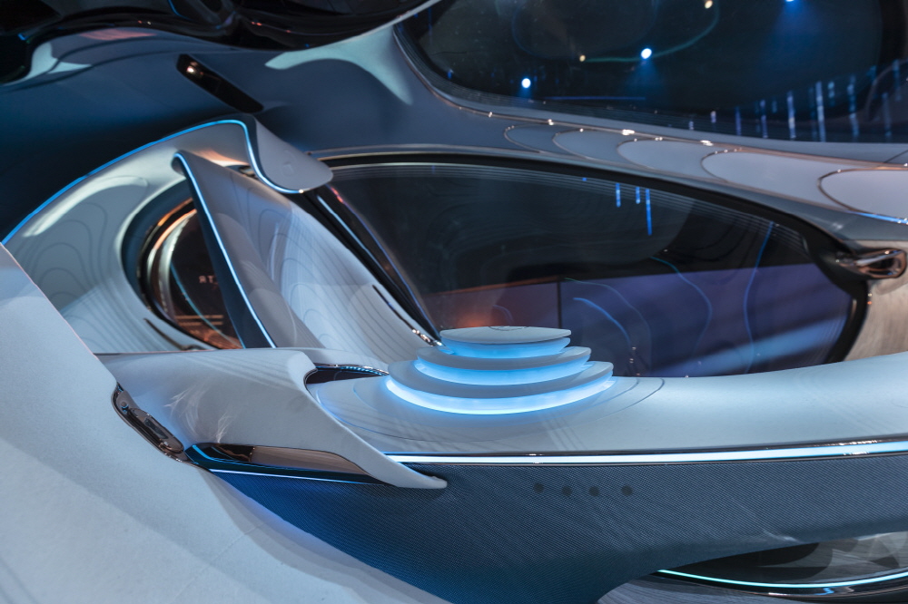 AVTR은 전후 또는 대각선으로 이동할 수 있는 전기 자동차다. 대시보드를 넘어 펼쳐진 전면 디스플레이를 통해 디지털 신경세포처럼 조명이 흘러나오며 투명한 좌우 문은 운전자와 주위 자연환경간의 조화를 촉진한다는 의미를 담고 있다.