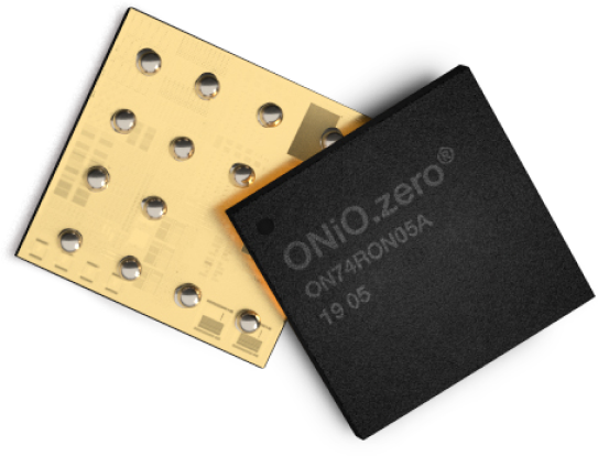 온아이오제로(ONiO.zero)는 온아이오(ONiO)가 개발한 배터리가 필요 없는 마이크로 칩이다. 저전력이며 직접 전력을 생산할 수 있어 코인 전지와 리튬이온 전지 등 배터리 필요 특성을 갖고 있다. 배터리를 이용하는 장치는 배터리 교체 등 유지 보수가 필요하지만 온아이오제로는 이런 유지 보수 걱정 없이 몇 년 동안 센서와 장치에 전력을 공급할 수 있다. 또 소형 전자 기기에서 대부분 공간을 차지하는 배터리가 필요 없어 옷이나 시계, 의료용 기기와도 친화도가 높다고 할 수 있다.