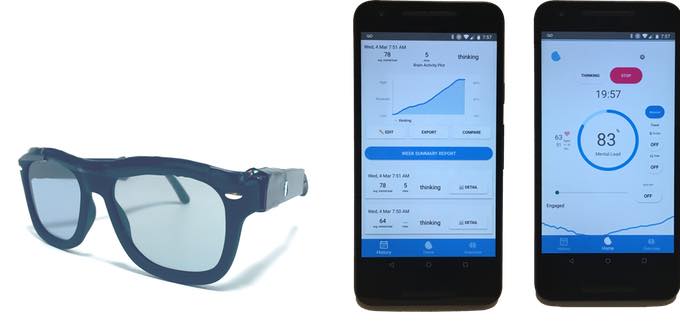 뇌 활동 센서는 왼쪽 프레임에 위치한 적외선 발광기와 검출기로 이뤄져 있으며 기능적 근적외선 분광법 fNIRS를 통해 뇌 조직 혈액과 산소를 측정한다. 두뇌 활동을 평가하는 것이다. 또 스마트폰과 연동해 관련 상태를 기록해 매일 변화를 검토할 수 있도록 했다.