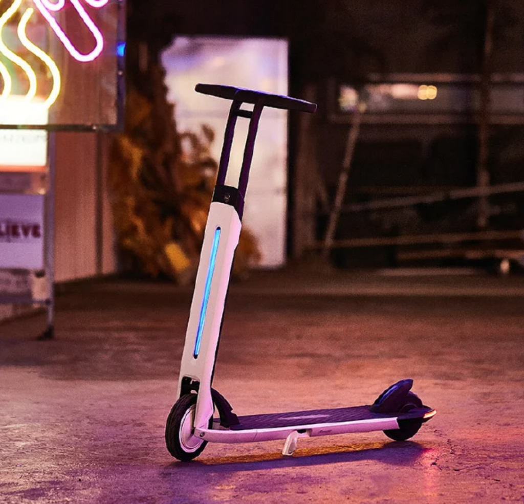 이 제품은 무게 10.5kg으로 250W 허브모터를 곁들여 최고속도는 20km/h, 항속거리는 12km다. 이를 통해 15% 경사도 오를 수 있다. 또 베젤리스 대시보드를 손잡이 부분에 갖추고 있다. 손잡이 부분은 아래로 접을 수 있어 휴대할 때 거치적거리지 않는다. 앞쪽에는 수직으로 일직선 LED가 빛을 내 야간 시인성 향상을 돕는다. 뒷발로 브레이크를 걸면 테일램프는 빨간색이 된다.