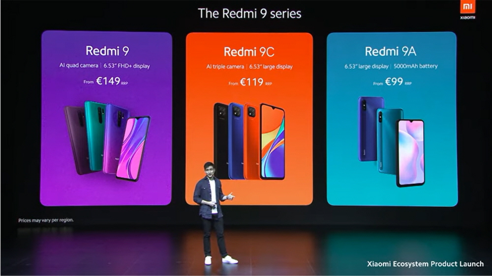 레드미9의 경우 사양은 6.53인치 화면에 해상도 2340×1080을 지원하며 칩셋은 미디어텍 헤일로90, 카메라는 1,300만 화소에 800만, 500만, 200만 화소 쿼드 카메라를 후면에 달았고 전면은 800만 화소다. 배터리 용량은 5,020mAh. 램 3GB와 롬 32GB 기준 가격은 149유로다.