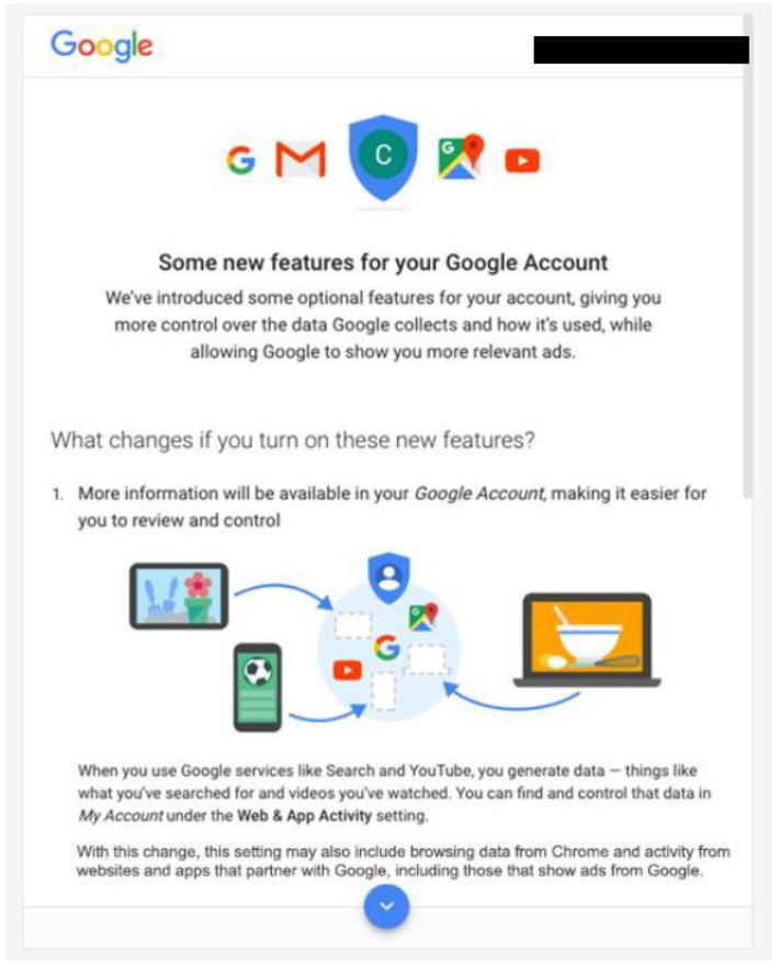 ACCC에 따르면 구글은 자사 사이트에서 수집한 개인 정보와 구글 이외 사이트나 서비스에서 얻은 개인 정보를 따로 관리하고 있으며 2016년 6월 이전에 이를 통합하고 마케팅에 활용할 수 없었다고 한다.