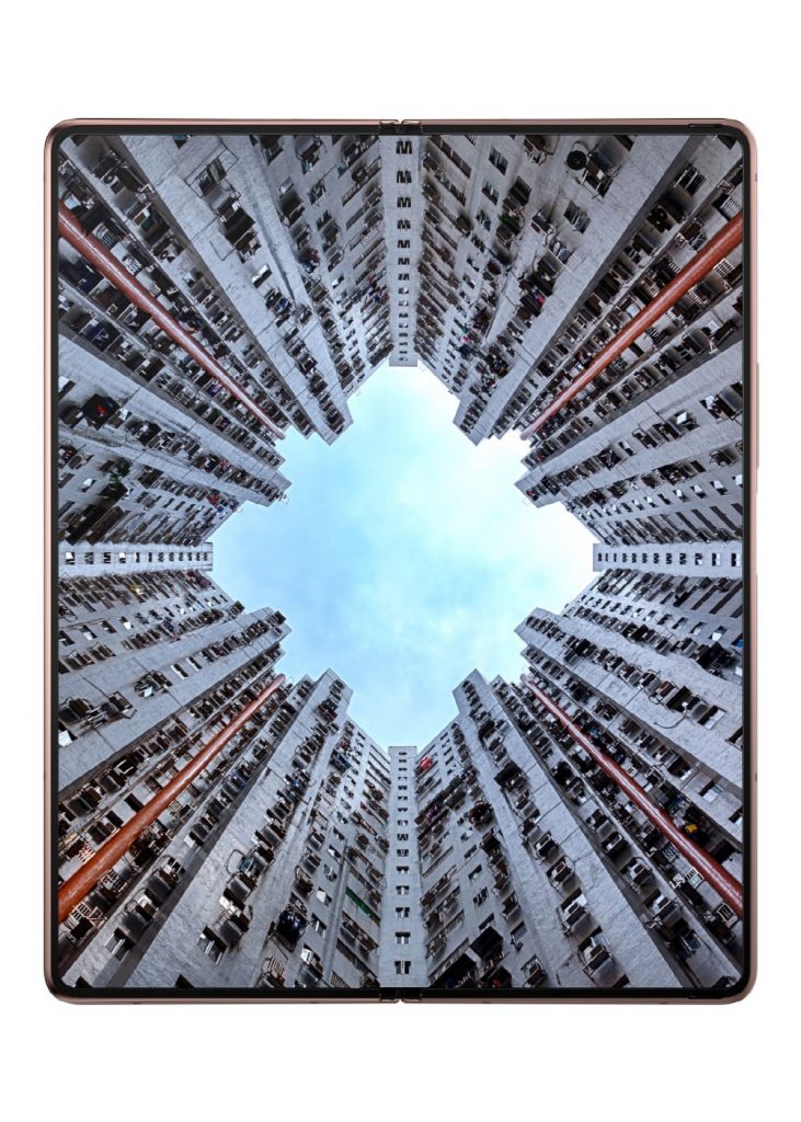 먼저 갤럭시Z 플드2는 기존 갤럭시 폴드처럼 수직 접이식 스타일을 유지하면서 닫힌 외부 화면은 거의 베젤리스 6.2인치로 대폭 향상시켰다. 열면 사각형에 가까운 7.6인치로 접거나 열어도 기존 모델보다 화면이 더 커진 것. 기존 갤럭시 폴드는 접었을 때 사용하는 외부 화면은 4.6인치였다.