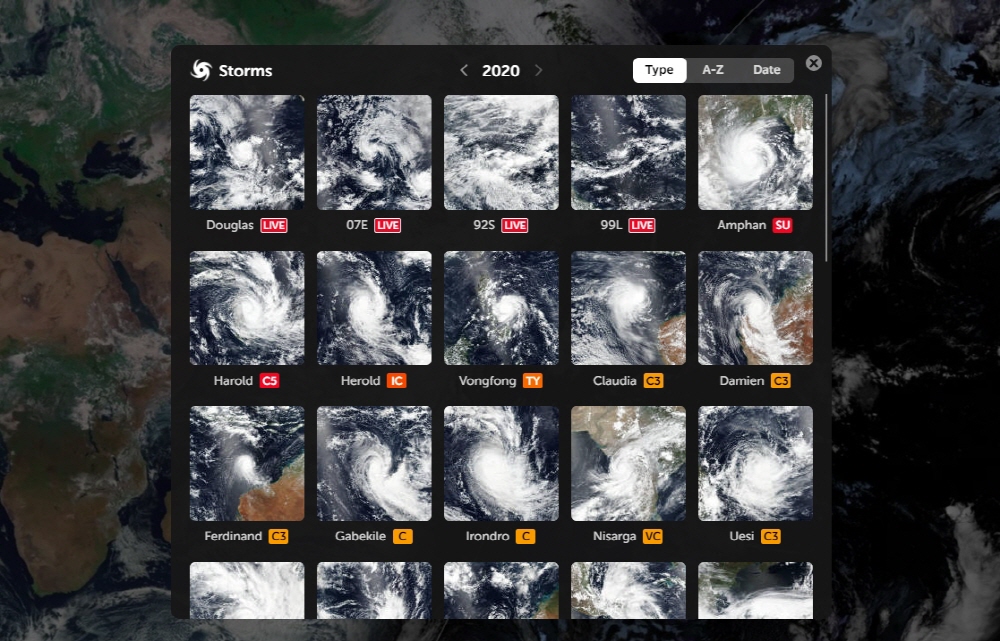 줌어스(Zoom Earth)는 허리케인과 태풍 모습을 위성 사진으로 거의 실시간으로 확인할 수 있게 해주는 사이트다. GOES와 메테오셋(Meteosat) 등 기상위성으로부터 실시간 위성 이미지를 받고 미항공우국 나사(NASA)의 GOES와 EOSDIS에서 이미지 데이터를, 마이크로소프트 빙맵플랫폼(Bing Maps Platform)과 Esri에서 지도 데이터를, 미 국립허리케인센터(National Hurricane Center), 미 합동태풍경보센터(Joint Typhoon Warning Center), IBTrACS 등으로부터 태풍 정보를 얻는다.