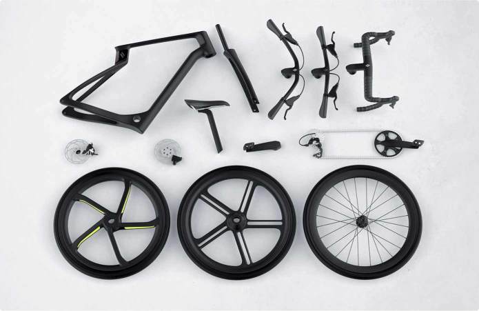 이 제품을 개발한 아레보는 자전거 제조사가 아닌 3D프린터 기술 스타트업이다. 로봇팔과 특수 헤드를 결합한 3D프린터로 얇은 탄소 필라멘트 위에서 모든 방향으로 보내고 레이저로 가열해 녹여 접착하는 방식으로 탄소섬유까지 제어한다.