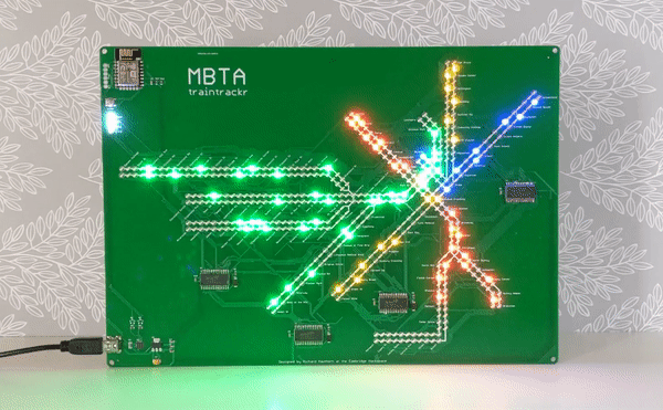 트레인트래커(TrainTrackr)는 복잡한 지하철 노선도를 전자기판 위 회로에 재현, 실제로 달리는 지하철 실시간 위치에 따라 LED가 빛나는 제품이다. 지하철 운행 상황을 파악 가능한 API를 이용한 것. 트레인트래커를 와이파이에 연결해 전자기판 상 노선도를 모방해 정렬한 333개 LED가 깜박이면서 실제로 지하철이 달리는 위치를 실시간으로 표시한다.