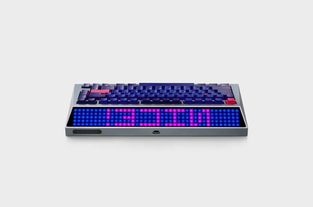 사이버키보드(CYBERBOARD)는 홍콩 브랜드 앵그리마오(Angry Miao)가 선보인 블루투스 키보드다. 5×40 RGB LED 패널을 장착하고 있어 메시지를 표현하거나 캐릭터 등 색상과 패턴을 자유롭게 짤 수 있다.