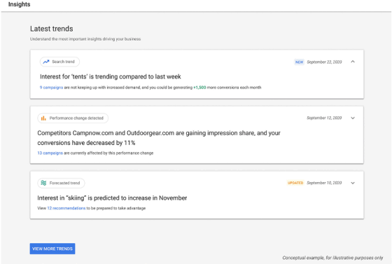 코로나19 유행은 가전 그 중에서도 컴퓨터 수요가 증가하고 재킷 수요가 하락하며 편안한 실내복 수요가 늘어나는 등 소비자 행동에 다양한 변화를 불러왔다. 이런 변화를 빠르게 감지하는 게 사업에서 중요한 건 당연하다. 구글이 새로 인사이트를 제공하는 인사이트 페이지를 구글 광고에 추가한다고 발표했다. 인사이트 페이지는 10월 베타 버전을 공개할 예정이다.
