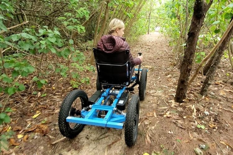 보통 휠체어 하이킹은 상당히 어렵지만 이 제품은 산길도 자연스럽게 주파한다. 본체는 알루미늄 프레임으로 이뤄져 있어 가볍고 특별한 기구나 장치를 이용하지 않아도 성인 남성 1명이 들어서 픽업트럭에 적재할 수 있다.