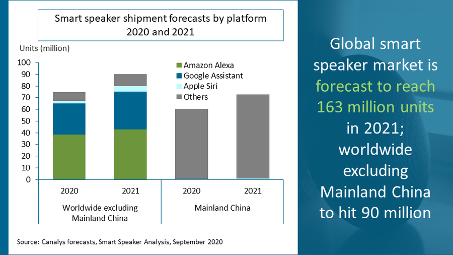 카날리스에 따르면 스마트 스피커 시장은 다시 성장세로 돌아서 2021년에는 1억 6,300만 대에 달해 21% 성장이 예상된다. 필수품 이외에 구입 추이가 둔화되고 있음에도 상당 지역에선 외출 금지나 자제로 더 많은 소비자가 새로운 장치를 집에 들여놓거나 오래된 구형 장비를 교환할 가능성이 있다는 것이다.