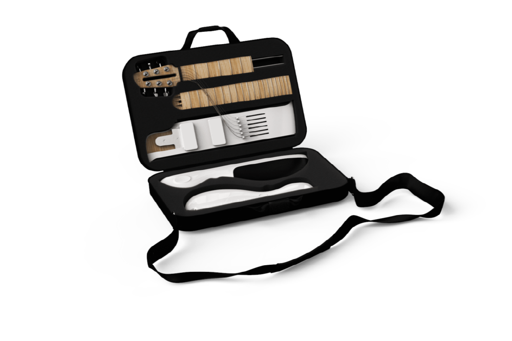 이 제품은 프랑스에서 6년 가까운 세월에 걸쳐 개발됐다. 넥은 메이플 재질로 프레임은 알루미늄, 바디는 플라스틱을 썼다. 기타 잭을 외부 앰프와 연결할 수 있고 헤드폰 연결도 가능하다. USB 타입C로 연결해 충전하면 15W에서 6시간 연속 재생이 가능하다.