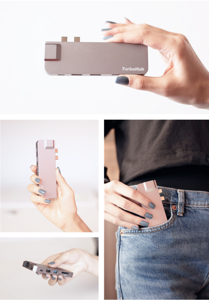하이퍼허브(HyperHub)는 USB 타입C 허브와 SSD 스토리지를 한데 묶은 제품이다. 쓰기와 읽기 속도 1,200MB/sec를 지원하며 용량은 1TB, 2TB, 4TB 3종류 가운데 고를 수 있다.