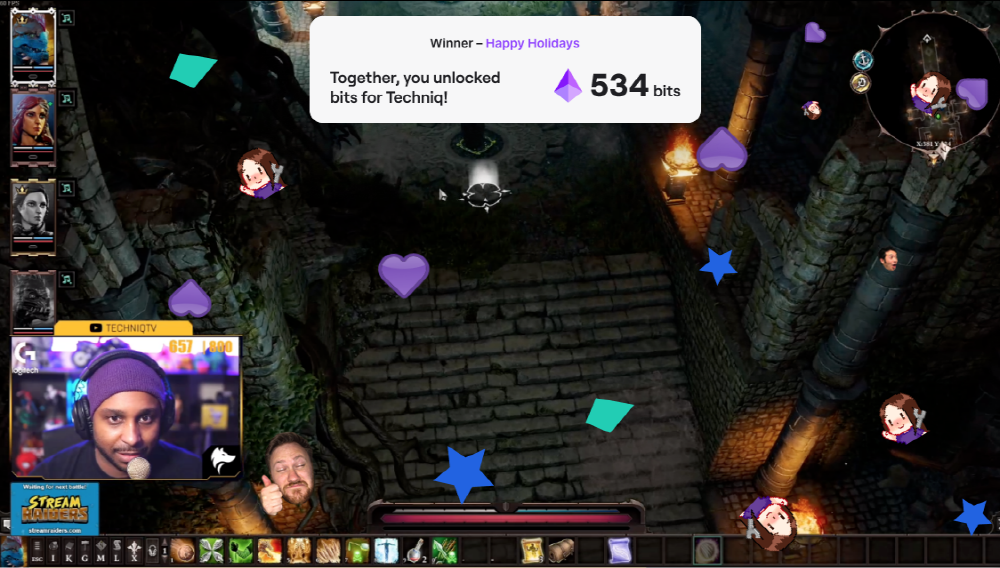 또 멀티플레이어 광고 종료 이후에는 가상 통화인 비츠(Bits)를 배급자에게 주기 위한 투표가 실시된다. 투표 결과에 따라 비츠가 수여된다. 비츠는 일반 시청자 부담으로 배급자에게 보내는 것이지만 이 투표에 의해 주어지는 비츠는 시청자가 아닌 트위치가 부담하는 방식으로 트위치는 투표를 촉구하고 있다.
