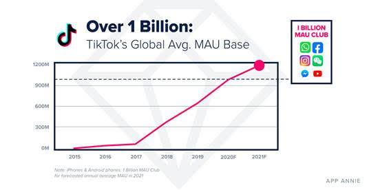 시장조사기관 앱애니(App Annie)에 따르면 틱톡 상승 추세는 2021년에도 계속될 전망이다. 앱애니는 2021년 짧은 동영상 관련 앱이 월간 활성 사용자 수 10억 명을 넘어설 것으로 예측하고 있다. 그 뿐 아니라 모바일 광고비 추이와 e커머스, 온라인 회의 등 모바일로 가속화될 가정 내 활동 성장에 관한 앞으로의 동향도 조사하고 있다.
