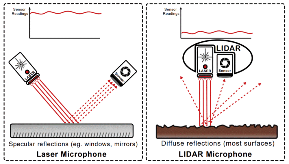 라이더처럼 레이저를 이용한 도청은 새로운 게 아니다. 음파는 물체를 진동시키고 있지만 이 진동은 물체에서 반사되는 빛에도 조금 변화를 가져온다. 1940년대 스파이 활동에 이용되는 레이저 마이크는 이런 변화에서 음을 재현할 수 있었다. 하지만 레이저 마이크는 유리창과 같은 부드러운 게 필요하다는 문제점이 남아 있었다.