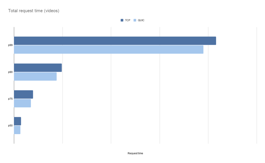 페이스북이 퀵을 도입해 혜택을 크게 받은 건 동영상 관련 수치다. 버퍼 이벤트가 발생하는 간격을 나타내는 MTBR은 22% 줄었고 동영상 관련 요청 오류는 8% 줄었다. 또 동영상 스트림이 중지하는 확률은 20% 감소했다고 한다.