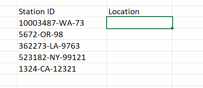 예를 들어 이미지처럼 인코딩되어 있는 스테이션ID 속에서 위치값만 확장하려면 지금까지는 다음과 같은 함수를 입력해야 했다(= LEFT (RIGHT (B18, LEN (B18) -FIND ( “-“, B18)), FIND ( “-“, RIGHT (B18, LEN (B18) -FIND ( “-“, B18))) – 1)). 하지만 이 경우 논리 오류를 찾아내고 그 값을 일일이 수동으로 수정해야 하며 이 과정에서 실수가 발생할 가능성도 높아진다. 또 수식 만들기가 아닐 때 목적을 알기 어렵다는 문제도 있었다.