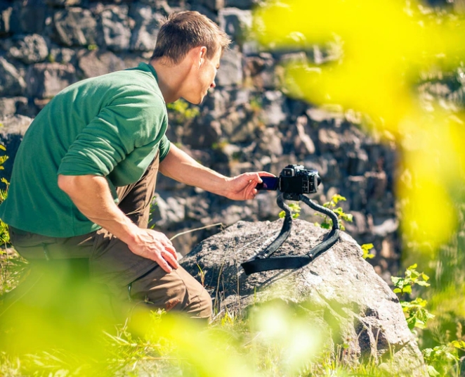 이 제품은 버튼 하나로 미니 삼각대로 활용할 수 잇는 카메라 스트랩이다. 카메라 양쪽에 있는 스트랩 고리에 착용하는 게 아니라 바닥에 위치한 삼각대 마운트에 장착한다. 스트랩 부분이 단단해 무거운 DSLR 카메라도 거뜬하다. 또 목에 건 상태에서도 일반 패브릭 스트랩 같은 유연성이 있기 때문에 촬영할 때 카메라를 살짝 들어 올려 두는 동작도 문제없다.