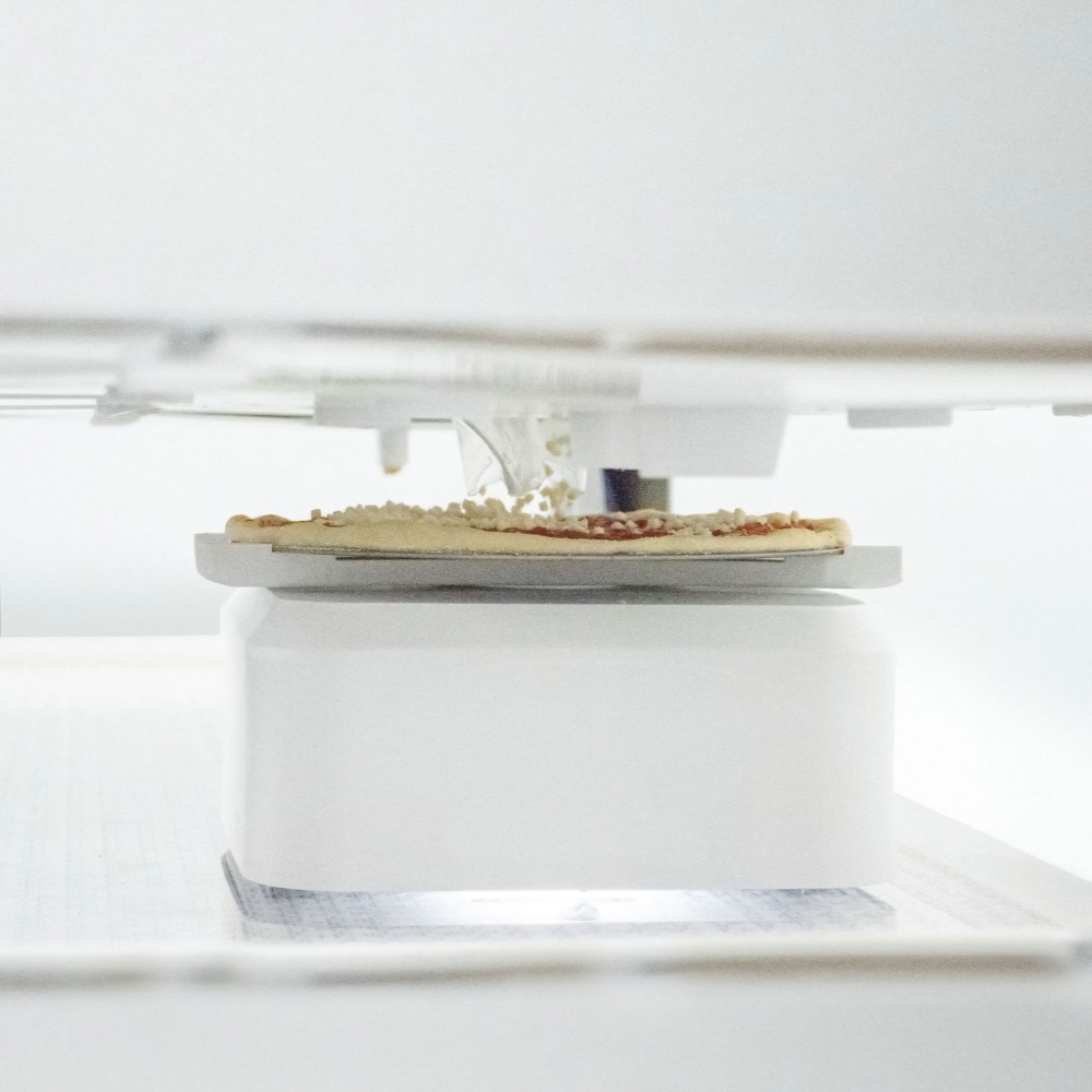 엑스로보틱스(XRobotics)가 전통적인 피자 제조 라인을 대체할 새로운 기기를 발표했다. 이 기업이 제공하는 건 크기와 폼팩터 모두 산업용 3D 프린터와 비슷하다. 직원은 재료를 트레이에 올려 연결된 태블릿으로 토핑을 선택하면 기계가 움직인다. 트레이는 회전하면서 소스와 치즈, 토핑 등을 균등하게 배분한다.