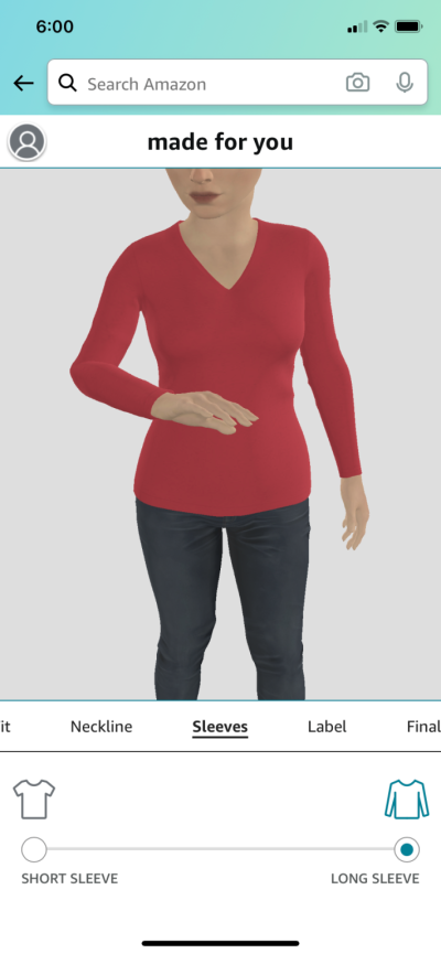 이 서비스는 정확한 치수로 사용자 정의 티셔츠를 만들 수 있게 해준다. 하지만 응용 프로그램으로 신체를 측정하고 크기를 측정하기 위해 모바일 기술을 활용하는 다른 기업과 달리 아마존 패션(Amazon Fashion)의 메이드포유 서비스는 맞춤을 위한 측정 재료로 사용자가 신장, 체중, 신체 스타일 그리고 사진 2장을 제공하면 된다. 데이터를 제공하면 사용자는 8가지 색상 중 선택하고 원하는 소매와 셔츠 길이, 목선과 패브릭 등을 선택할 수 있다. 그 밖에 셔츠 레이블에 이름을 인쇄할 수도 있다.