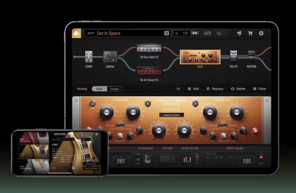 물론 사용할 수 있는 장비와 기능 수를 제한한 저렴한 버전도 있으며 무료 버전은 앰프 2개와 페달 6종류를 사용할 수 있다. iOS11 이후 iOS와 기타를 연결하는 인터페이스를 갖고 있다면 이용해볼 수 있다. 모든 기능 제한이 없는 엘리트 버전은 99.99달러다.