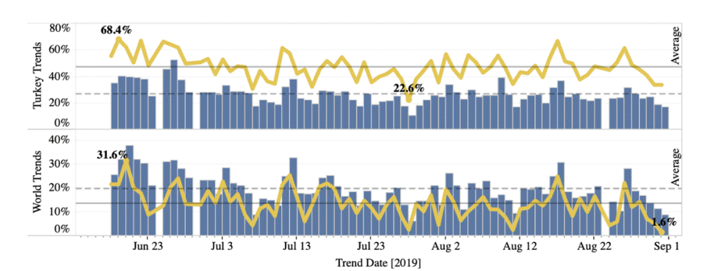 트위터에 인간을 가장한 트윗을 자동 생성하는 봇이 대량 존재하는 것으로 알려져 있다. 2017년 연구에선 트위터 활성 사용자 중 무려 15%가 로봇인 것도 밝혀지고 있다. 연구팀은 이 봇이 터키와 전 세계 트렌드에 미치는 영향을 조사했다.