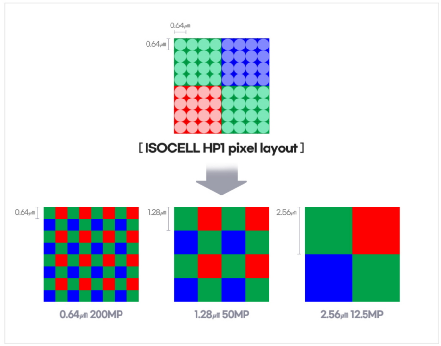 최근에는 스마트폰 카메라 화소 경쟁이 과열되고 있다. 삼성전자가 내놓은 갤럭시나 샤오미 제품은 이미 1억 800만 화소 모델을 선보이기도 했다. 다만 스마트폰 작은 이미지 센서에서 이만한 고해상도화를 하면 픽셀당 크기가 작아지고 광량도 불리하다. 실제로 아이소셀 HP1도 픽셀당 0.64μm로 크기가 작다. 따라서 카멜레온셀(ChameleonCell)이라고 부르는 기술을 이용한다. 이는 인접 픽셀을 묶어 1픽셀로 처리해 해상도를 떨어뜨리는 대신 광량을 최대한 끌어 모으는 것이다. 아이소셀 HP1은 환경에 따라 2×2 혹은 4×4 픽셀을 묶어 5,000만 화소나 1,250만 화소 센서로 이용할 수 있다. 전체 크기는 이미지 크기가 너무 커지기 때문에 스마트폰에 탑재할 경우 이 가운데 하나가 표준 촬영 모드가 된다.