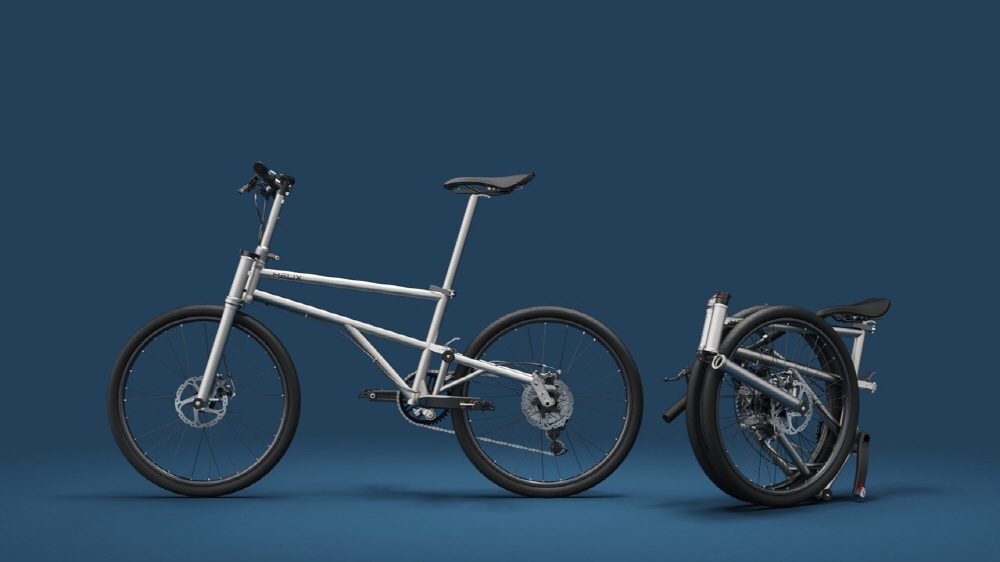 헬릭스(Helix)는 캐나다에서 만들어진 24인치 대구경 타이어에 헤드 튜브 상하가 접혀 후륜으로 늘어나는 프레임 등 타이어 정도 크기까지 작게 접을 수 있는 티타늄 재질 접이식 자전거다.