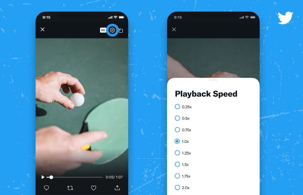 이번 테스트에선 동영상을 보면 작은 톱니바퀴가 표시된다. 클릭해서 재생 속도를 바꿀 수 있다. 트위터 측 관계자에 따르면 가변 재생 속도 기능은 트윗 영상, 광고 영상, 음성 트윗, DM 영상, 라이브 방송 리플레이에서 사용할 수 있다. 또 테스트는 앞으로 iOS로도 확대될 예정이다.
