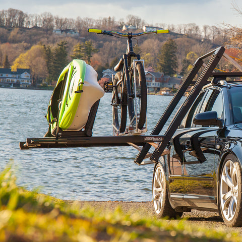 드롭랙(Dropracks)은 차량 지붕에 카누나 자전거 적재를 편하게 할 수 있도록 돕는 슬라이드방식 루프 캐리어다. 지붕에 실려 있던 캐리어는 차량 옆에 있는 인출 핸들을 빙글빙글 돌리면 허리 높이까지 내려온다. 낮아질 뿐 아니라 3개 방향에서도 올릴 수 있어 편하다.