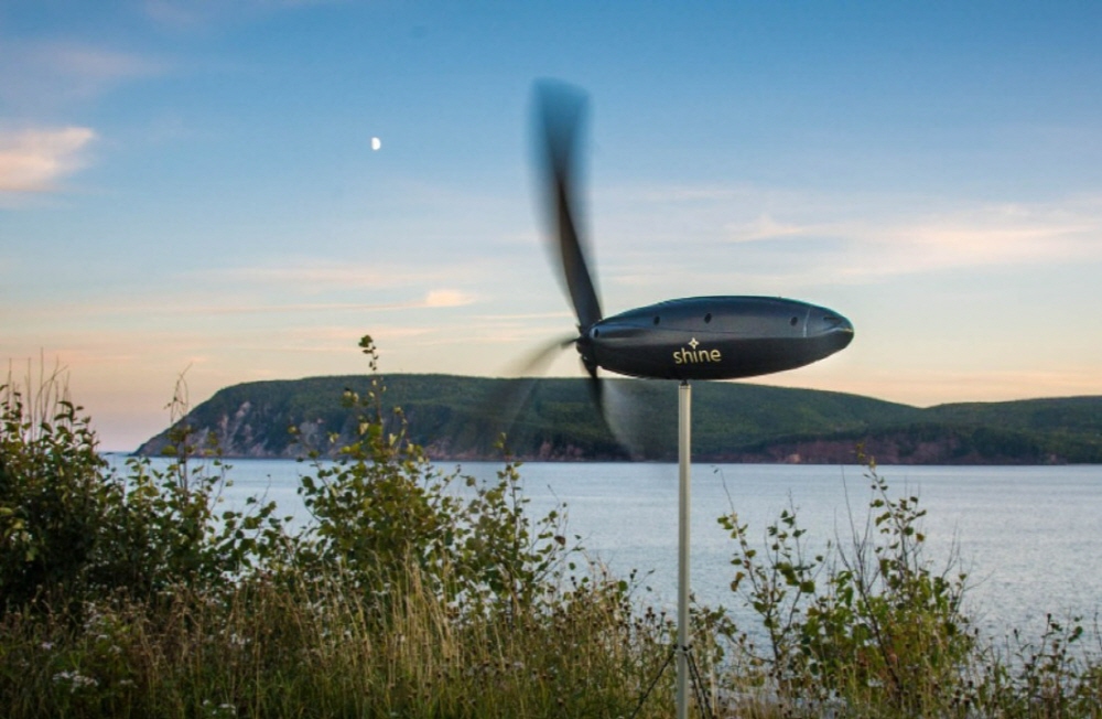 샤인 터빈(Shine Turbine)은 캐나다에서 만들어진 휴대용 풍력 발전용 풍차다. 물통이나 페트병 정도 크기여서 운반이 쉽다. 고정용 지지대와 지면에 연결하는 와이어, 페그는 본체에 수납할 수 있고 날개는 본체에서 꺼내 조립한다. 바람만 있으면 날씨나 일조시간에 좌우될 필요가 없어 태양광 패널과는 또 다른 선택이 될 수 있다.